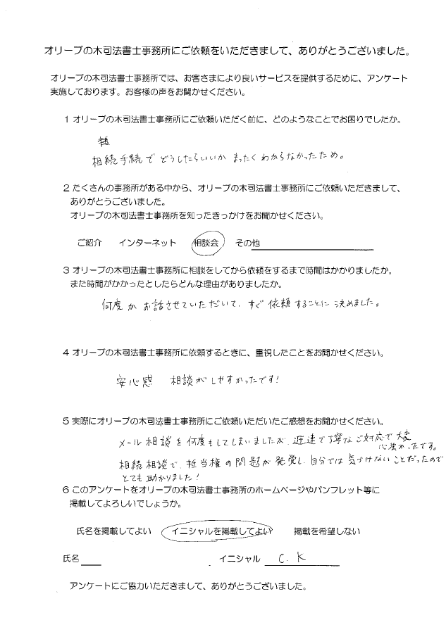 オリーブの木司法書士事務所にご依頼をいただきましてありがとうございました