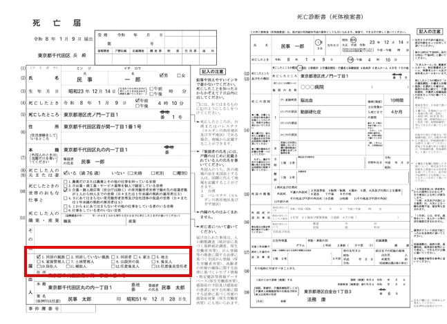 死亡の原因や死亡の日時について、届出人は責任を負いません。