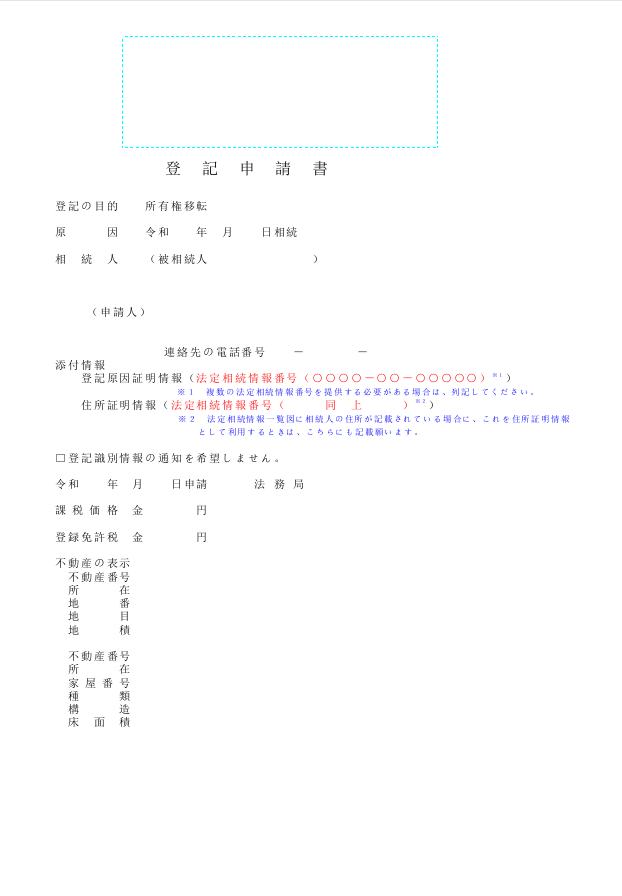 法定相続情報一覧図の代わりに、法定相続情報番号を記載します。