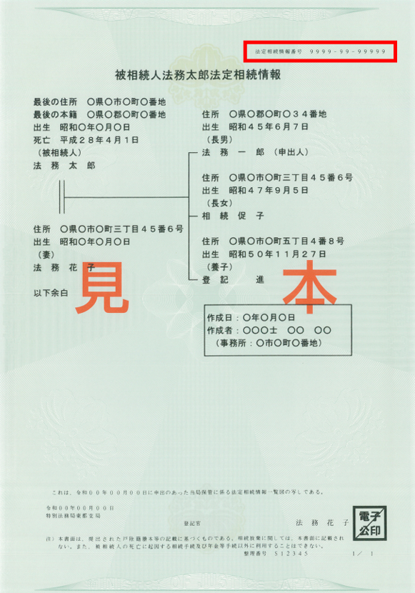 法定相続情報番号とは、法定相続情報一覧図を識別するために付される番号です。