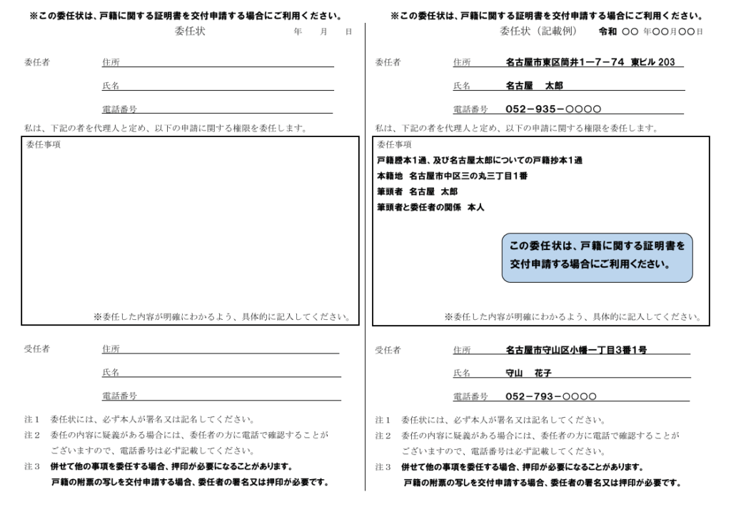代理人は、市区町村役場に委任状を提示する必要があります。