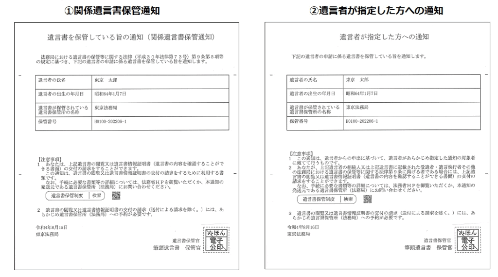 法務局保管制度を利用した場合、遺言者が死亡すると法務局から通知があります。