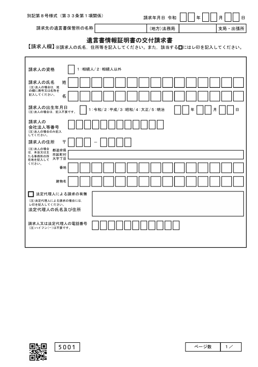 遺言書情報証明書の請求は、窓口に出向いて請求する方法の他に郵送請求ができます。