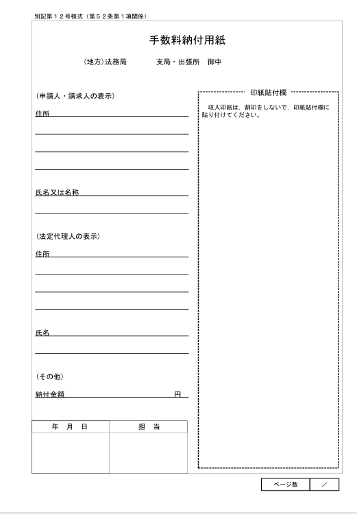 収入印紙1400円分を手数料納付用紙に貼り付けて、納入します。