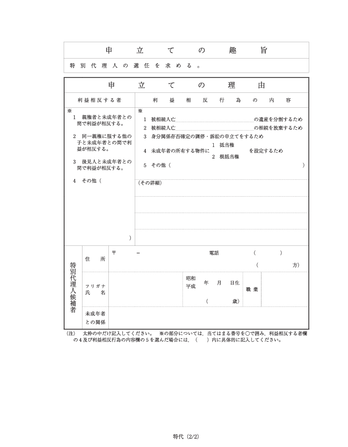 特別代理人選任の申立てで、特別代理人の候補者を立てることができます。