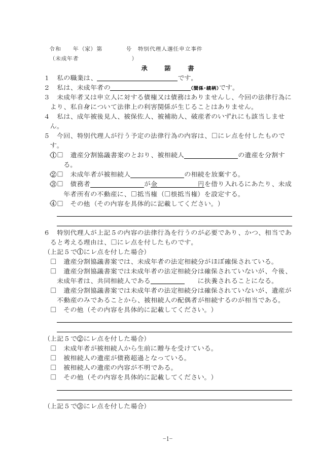 特別代理人選任の申立書に添付する必要書類は、次のとおりです。