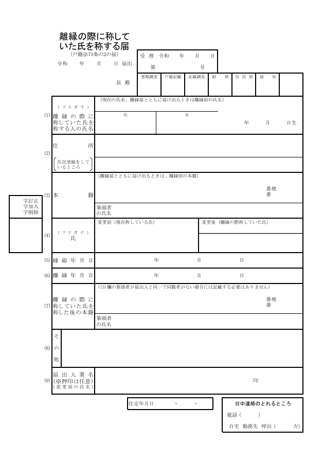 (1)書面申請の記載例