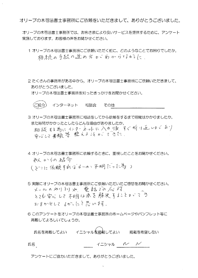 5 実際にオリーブの木司法書士事務所にご依頼いただいたご感想をお聞かせください。