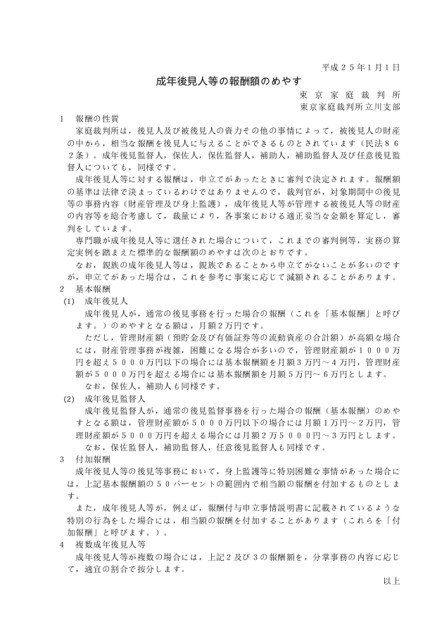 成年後見報酬は、認知症の人の財産規模に応じて月額2~6万円程度です。
